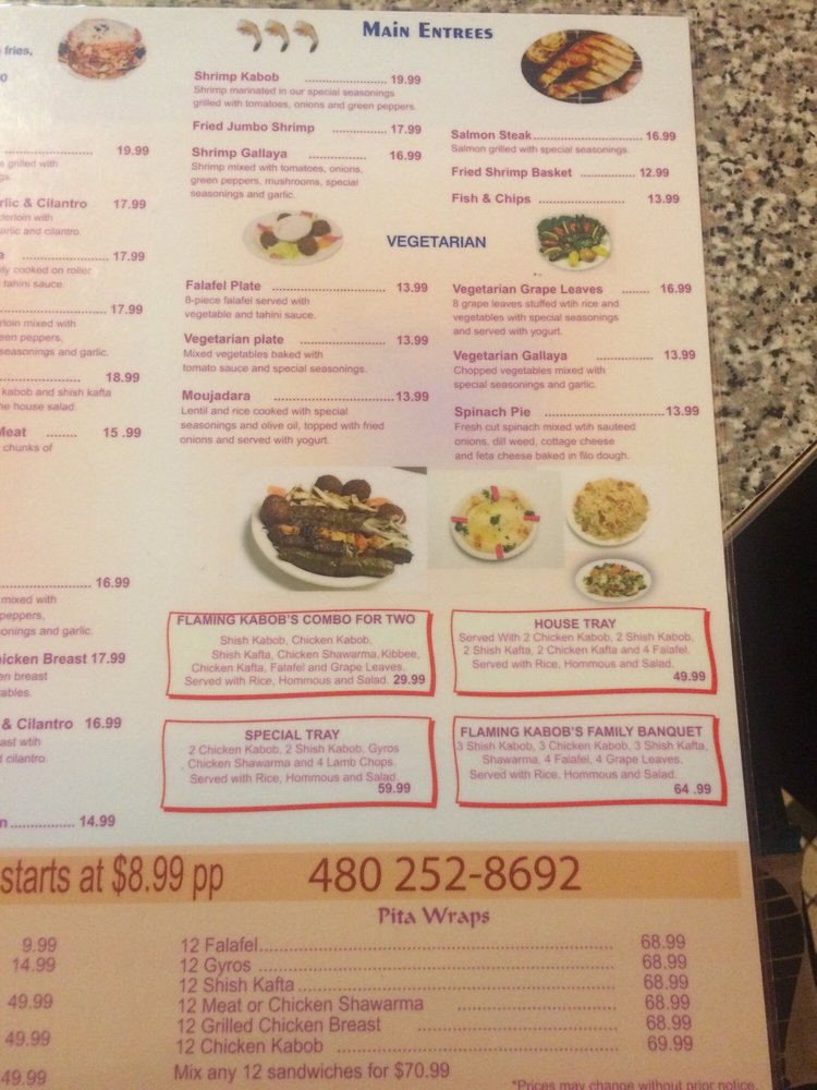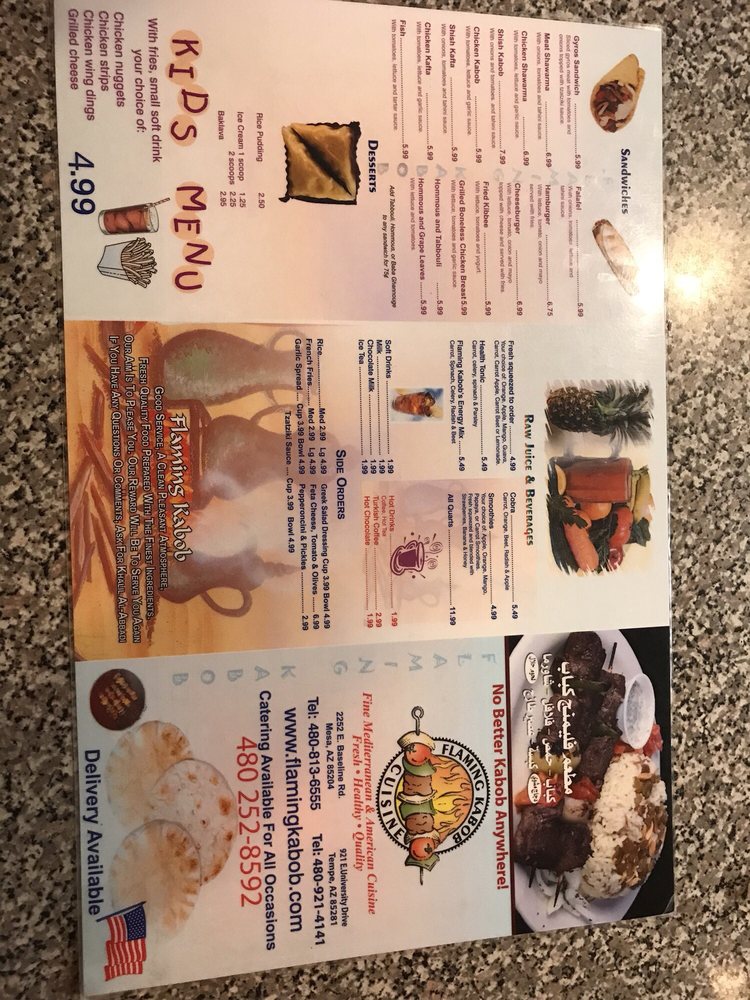 Welcome to Flaming Kabob, a delightful fusion of Middle Eastern and American cuisine located at 2252 E Baseline Rd, Mesa, AZ. This cozy eatery offers a diverse menu tailored to all palates, featuring vegan and vegetarian options alongside their renowned pita wraps and sandwiches.